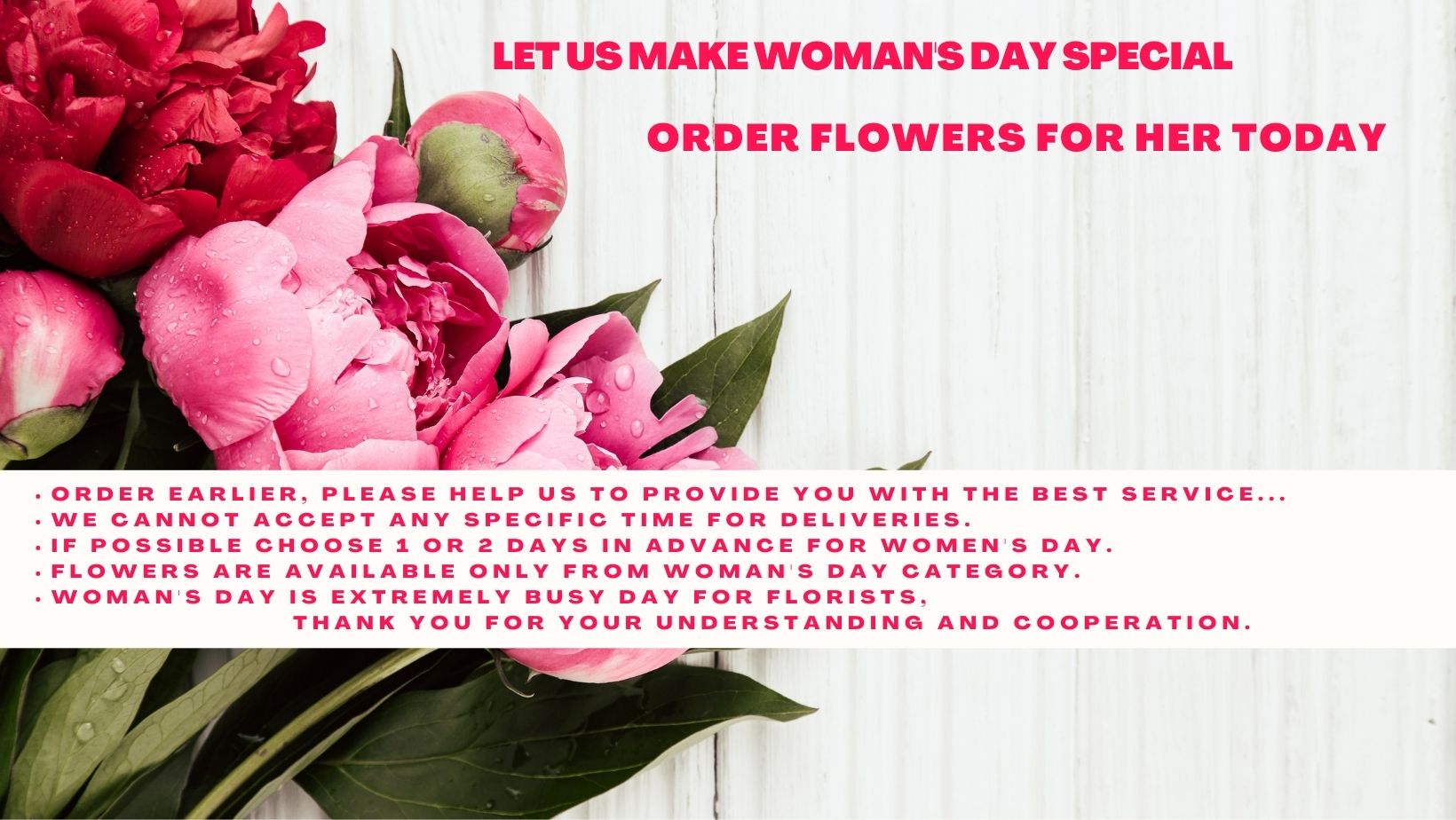 Bouquets and Boxes. BEFORE International Women's Day. DON'T order for March 5-8